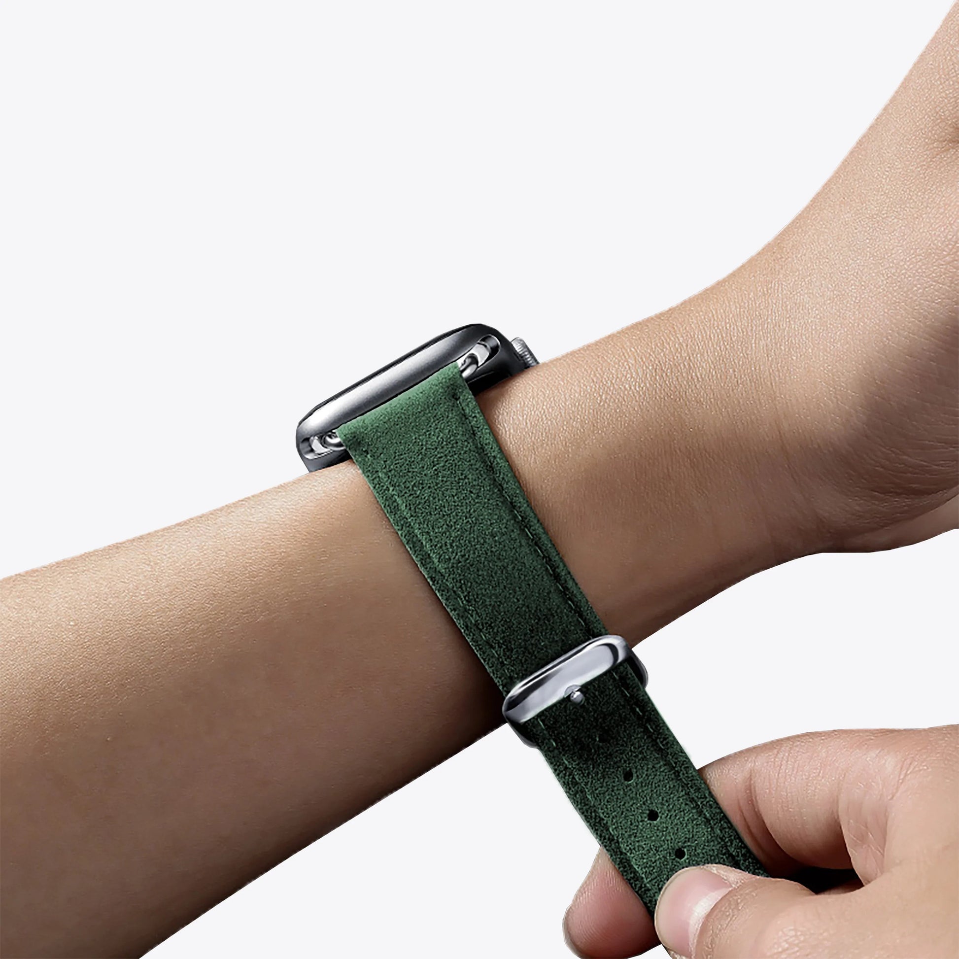 Our Classic Apple Watch Bands are crafted from authentic Italian Alcantara® — exceptionally soft, lightweight, and comfortable against the skin. The material is naturally stain-resistant and water-resistant, and the band features a refined, slim profile for an elegant everyday look.