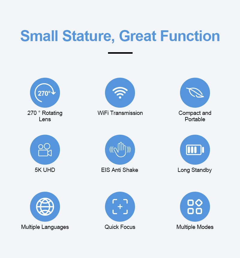 AEVYVKV 5K Ultra HD Pocket Action Camera 270° Rotatable Vlog WIFI Sports Camera ELS Anti-Shake Bicycle Outdoor Sports Camera Recorder