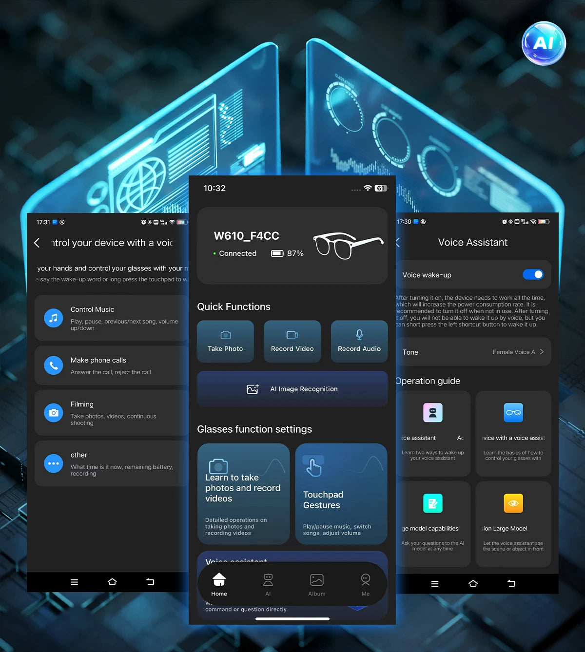 Function: Music, Camera, VIDEO, Voice Assistant, calling, Sun protection, Anti-blue light, AI translator, Chat GPT,  AI