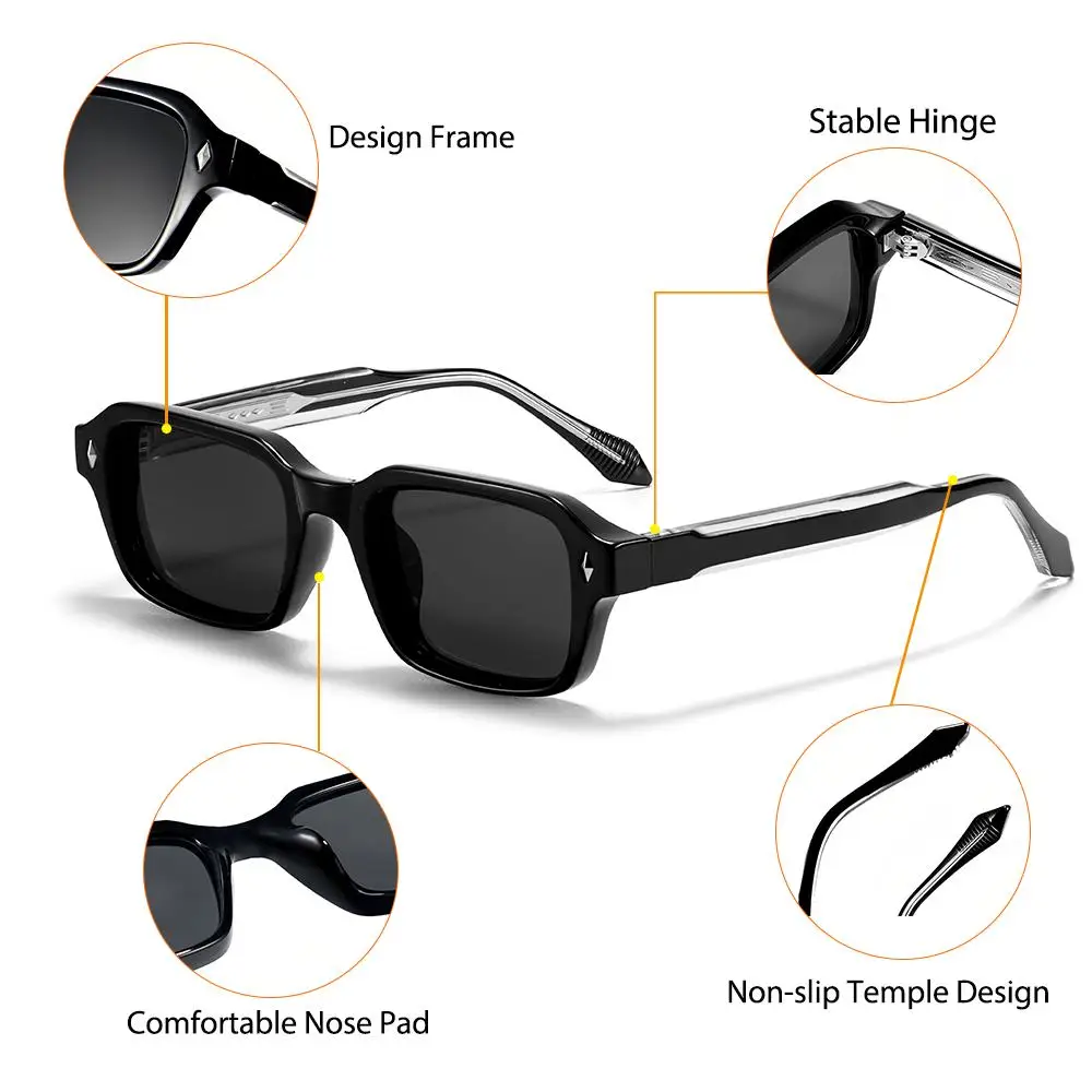 CATERSIDE Unisex Square Frame Sunglasses Retro Punk Personalized Design Sun Glasses Travel Business Festival Gift Eyewear