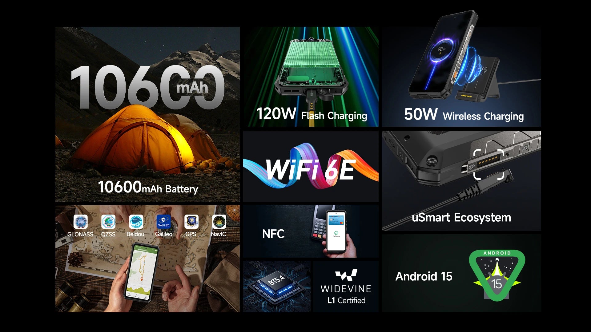 *A rated capacity of 5300mAh at 7.74V is equivalent to 10600mAh capacity. Power consumption data above are from the Ulefone lab, which will be varied by actual usage.