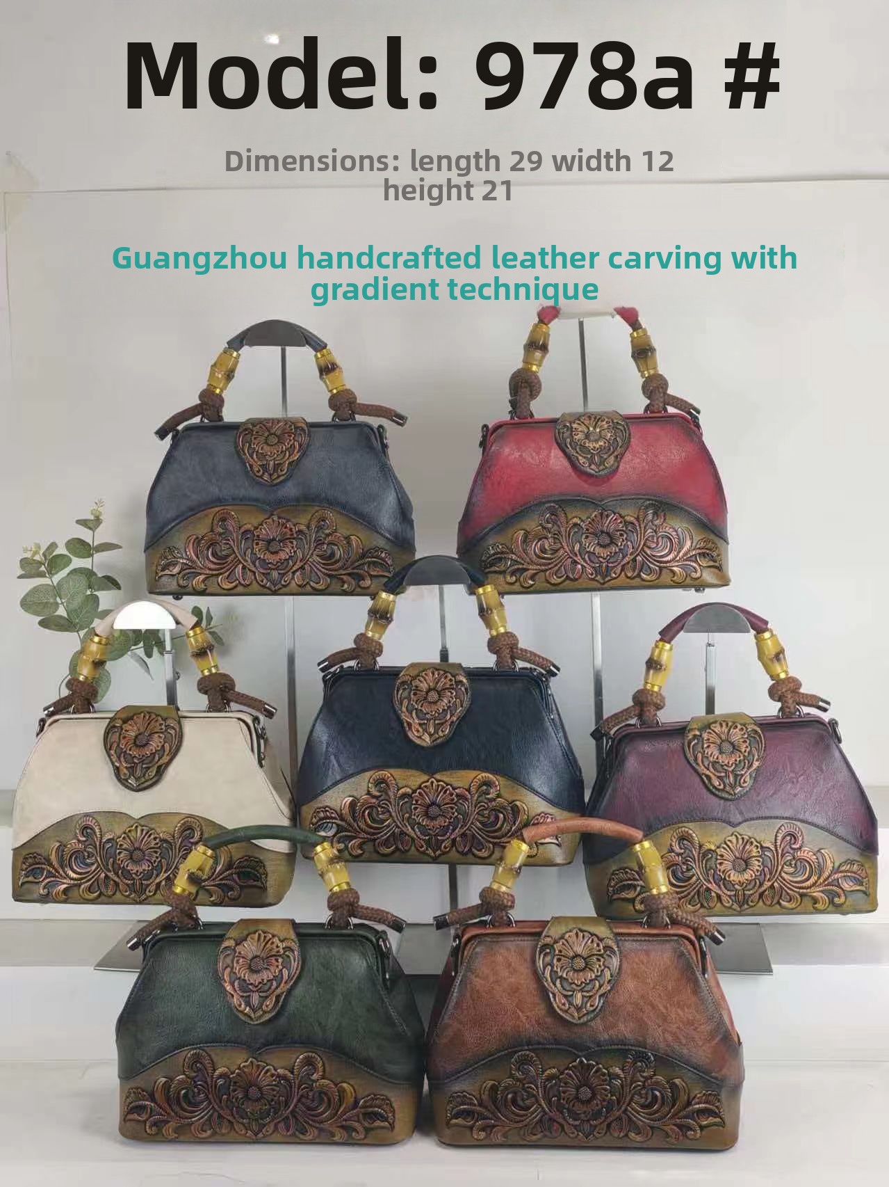 The New Ethnic Style Embossed Cowhide Boston Bag Fashion Handbag Women Trendy Crossbody Handbag